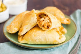 A small pastry filled with chicken, potato, carrots and other vegetables.
